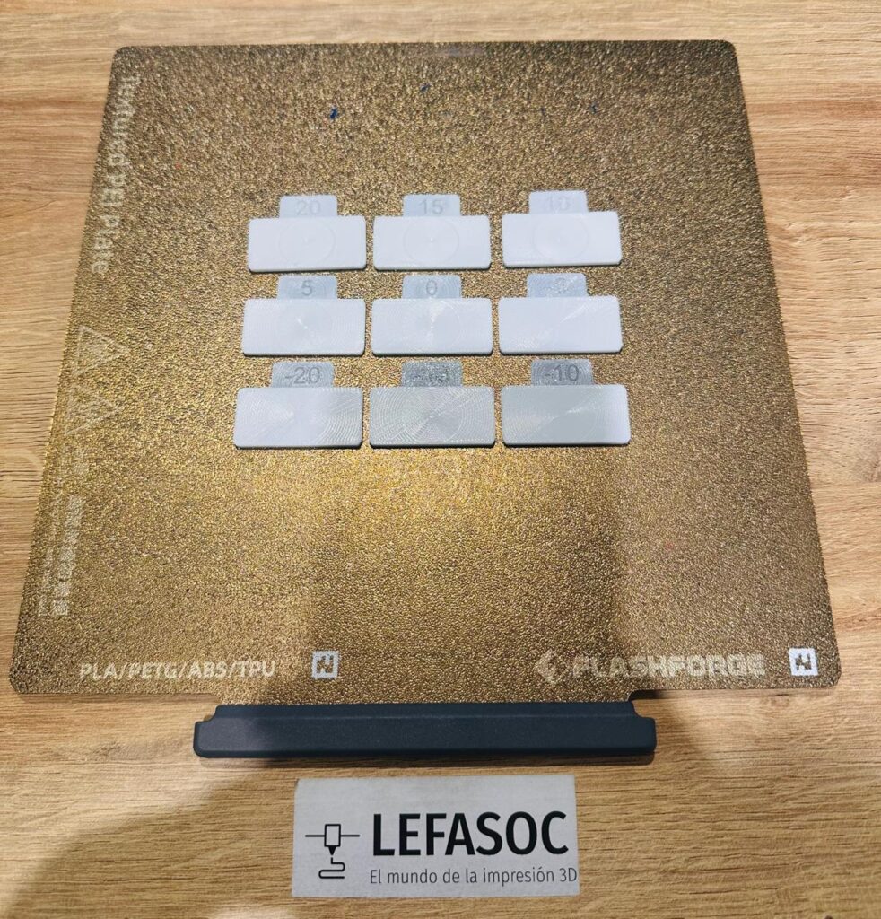 Este test suele imprimir superficies planas o patrones que permiten evaluar el volumen real de material depositado.