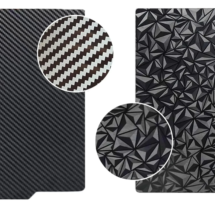 Diseño texturizado de doble película: placa PEO-PET con PET de fibra de carbono en un lado y una película PEO única en el otro